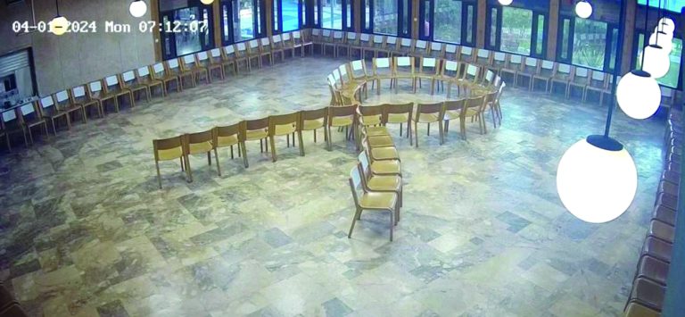 *תמונה ראשית: סמל השבת החטופים. מקווים שישבו איתנו סביב שולחן חדר האוכל כמה שיותר מהר. צילום: מצלמת אבטחה, חדר האוכל בקיבוץ חצרים