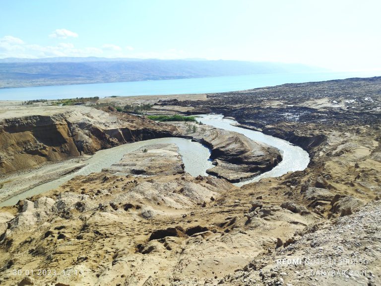 נהר הירדן נשפך לצפון ים המלח, בערוץ שנמצא עמוק עקב ירידת המפלס והן מחתירת הנהר במשך השנים לעומק עשרות מטרים. כך נוצר קניון מרשים בשכבות הסחף. הקניון ברובו חשוף מצמחייה ורק בסוף הדרך נפתח הנקיק לאפיק רדוד ולצידו מעט צמחיית נחלים, בנקודות אחדות. לאורך הנקיק ניתן לזהות נביעות קטנות המצטרפות לנהר.