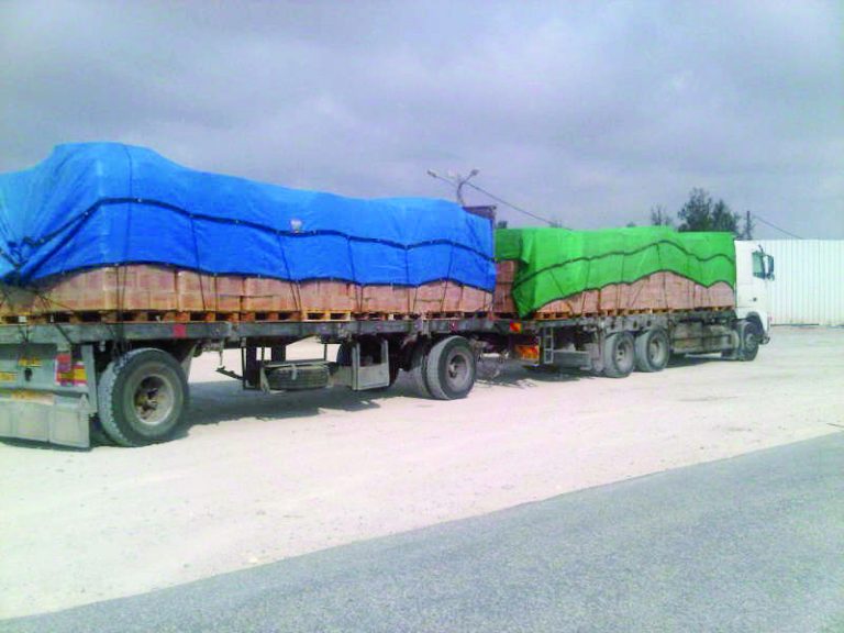 משאית עמווסת סחורות במעבר כרם שלום צילום דובר צהל