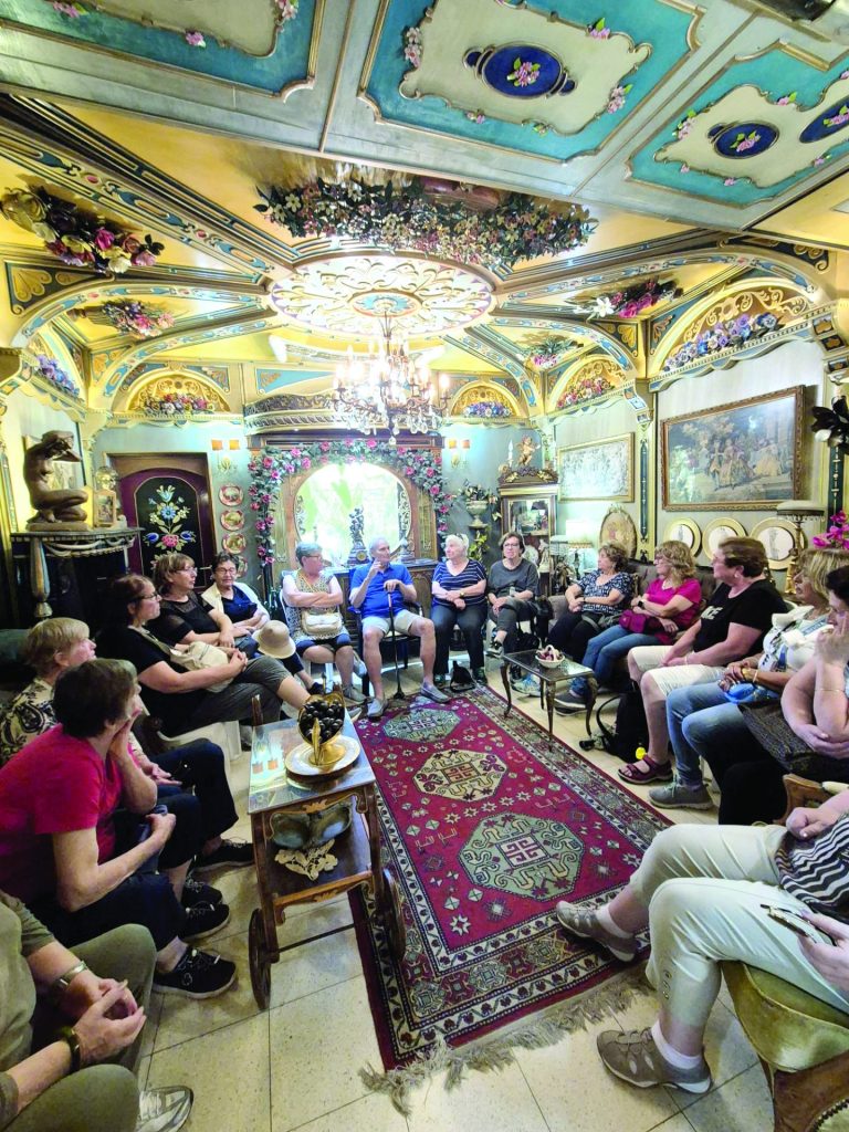 על אף שהמקום נראה כמוזיאון (וגם נקי ומבריק), זהו ביתם של הזוג, כולל מטבח ומקרר החבוי מאחורי דלתות עץ מצוירות, טלוויזיה הנראית כתיאטרון בובות ומזגן ש"הוסב" לאח. אפילו חדר השינה שכמו לקוח מאיזו אגדה, מוצג בפני המבקרים הסקרנים.
