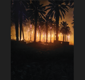 מטע התמרים של קיבוץ אלמוג שבצפון ים המלח הוצת, בחשד לאירוע טרור. במורן שבצפון זועמים על החלטת רשות מקרקעי ישראל להעניק לעבריין פשיעה חקלאית שטח שנגרע משטחי המרעה של הקיבוץ   נזק כבד נגרם לקיבוץ